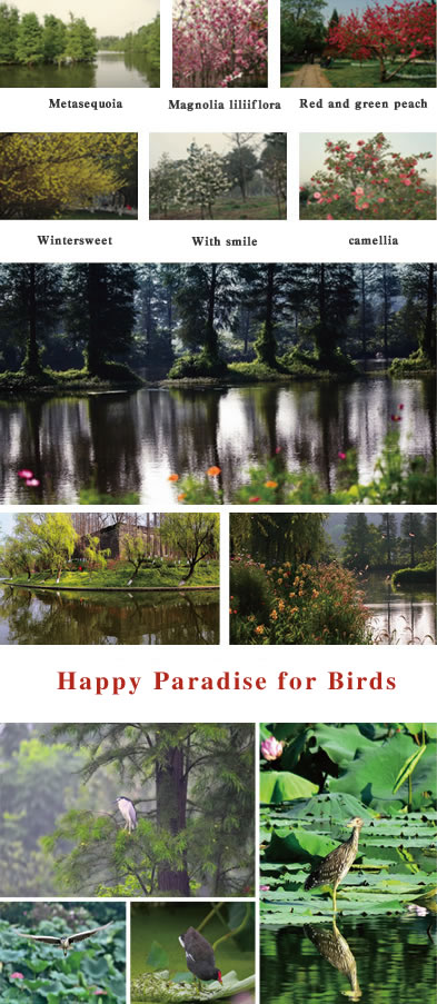 Being the national-level wetland park, Mingyue park preserves the original pond and historical features, restores the original water system, and creates a wetland and echoes the ancient city wall like a jade belt embracing the ancient city wall. There are 80 varieties totaling about 10,000 species of large and small trees planted in the park, including the major varieties such as crape myrtle, sakura, cherry, lotus, ginkgo, white magnolia and etc.