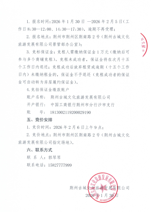 关帝庙景区西侧门面公开招租公告